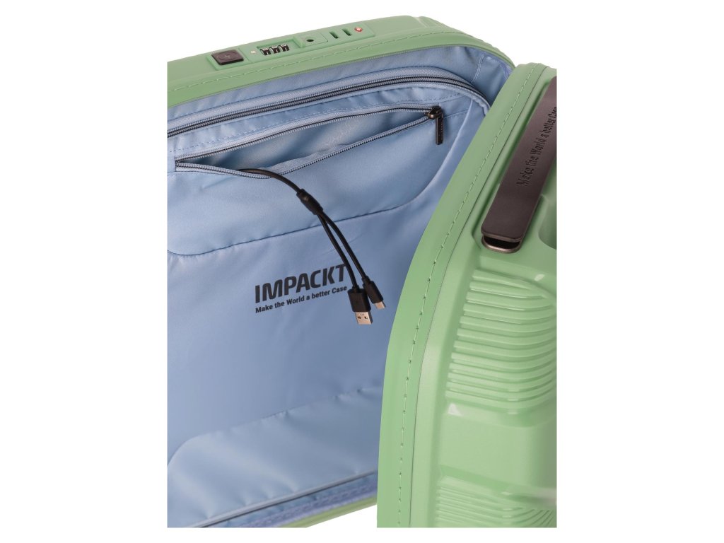 Značka Impackt představuje novou generaci cestovních kufrů, které spojují odolnost, lehkost a ekologické myšlení. Její cílem je nabídnout stylové a funkční kufry vyráběné s ohledem na životní prostředí, bez kompromisů v kvalitě a designu. Impackt se odlišuje svým přístupem k výrobě. Kufry jsou vyrobeny z recyklovaných plastů (Recycled Polypropylene – RPP), které zajišťují vysokou odolnost vůči nárazům, poškrábání i extrémním podmínkám. Díky tomu jsou kufry Impackt pevné, lehké a šetrné k planetě.
